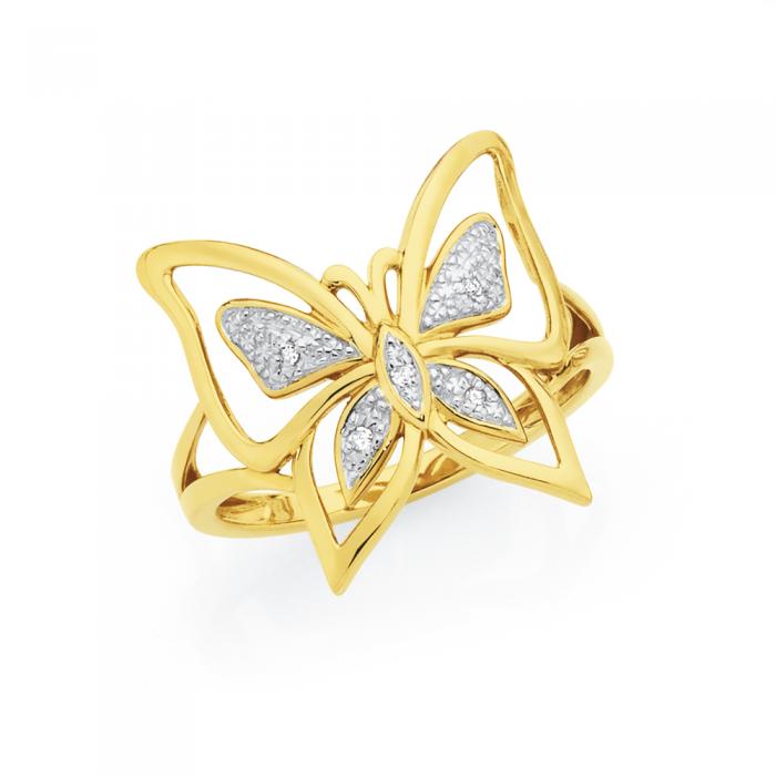 9ct Gold Diamond Large Open Butterfly Ring 8237455