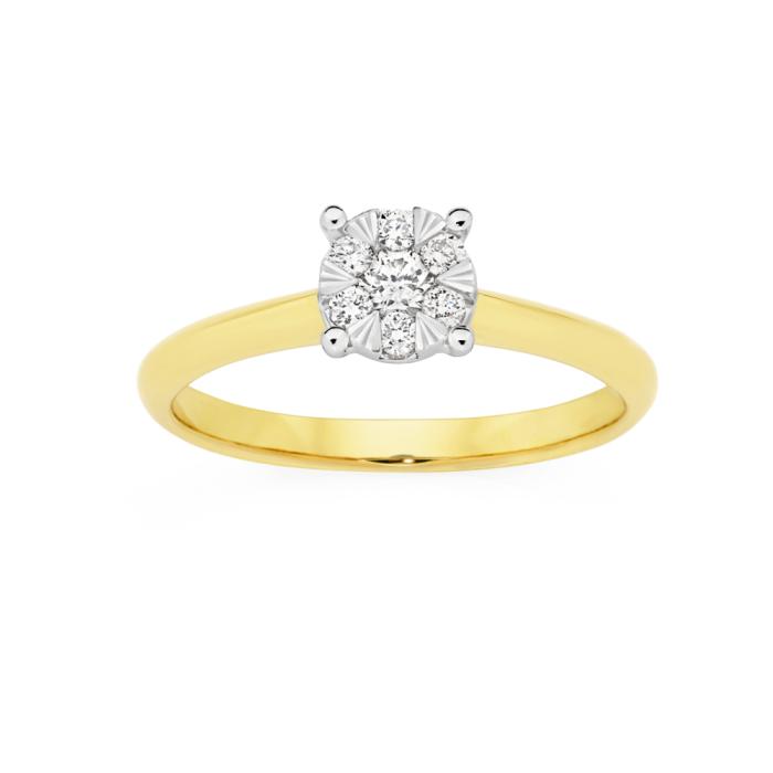 9ct Gold Diamond Round Brilliant Cut Cluster Ring Total Diamond Weight =.20ct