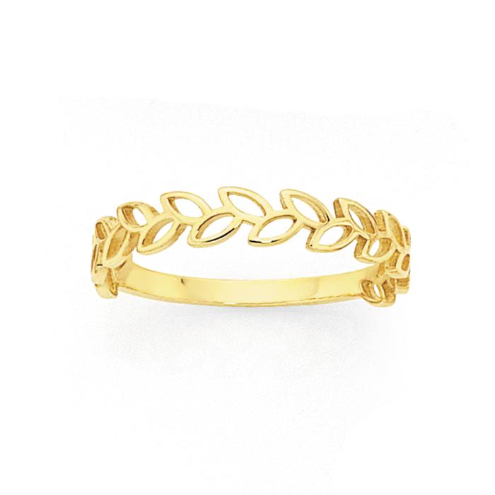 European Made 9ct Gold Open Leaf Wreath Stacker Ring - Available in Sizes M, O and Q