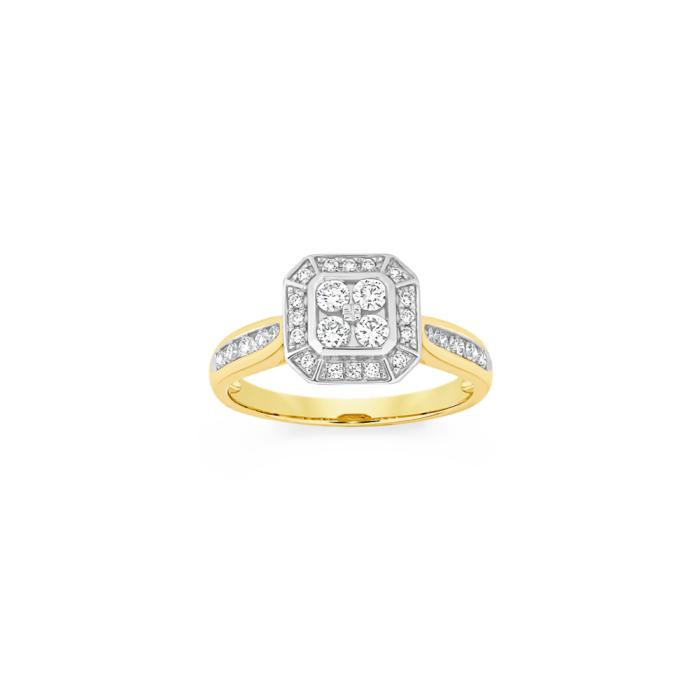 Alora 9ct Gold 1/2 Carat TW Lab Grown Diamond Asscher Cluster Ring