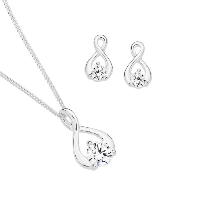 Sterling Silver CZ Wishbone Pendant & Earrings Set 1567029