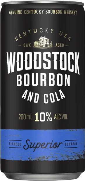 Woodstock 10 percent Bourbon and Cola is a favourite amongst all premix Bourbon fans due to Woodstock's smoothness and genuine Kentucky taste. Woodstock 10 percent Bourbon and Cola is a smoother, more robust whiskey premix that delivers plenty of extra flavour and enjoyment.
