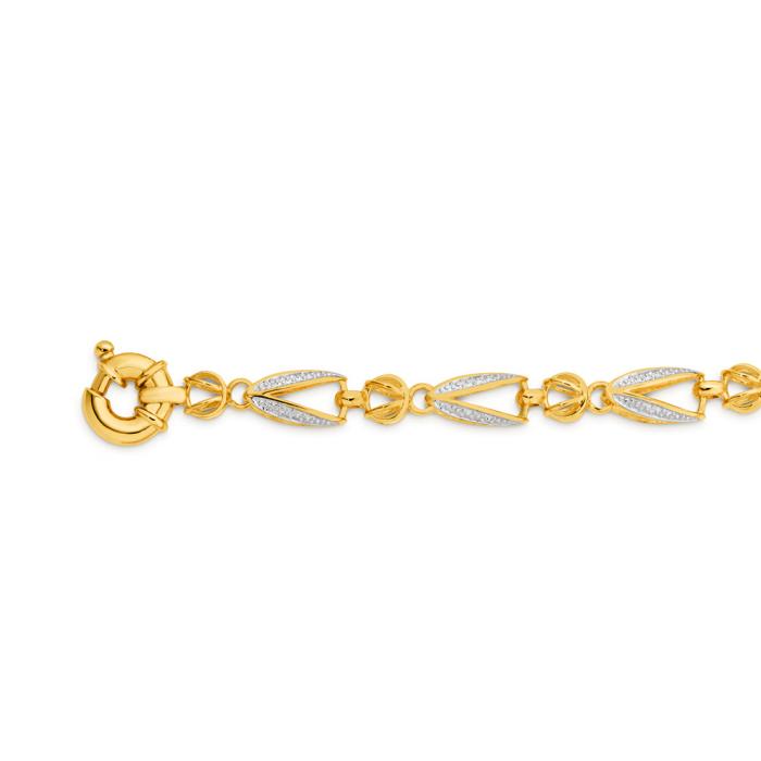 9ct Two Tone 19cm Solid Diamond-cut Tulip Link Bolt Ring Bracelet - Approximate Width 10mm Bolt Ring and 6mm Link Width.