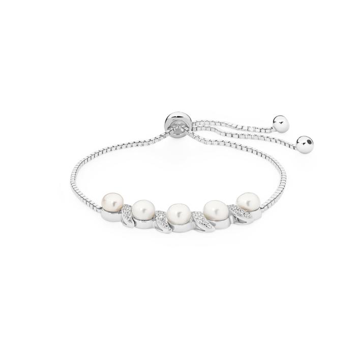Sterling Silver Pearl & Cubic Zirconia Friendship Bracelet