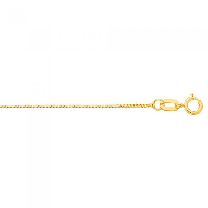 Italian Made 9ct Gold 45cm Solid Box Chain - 54 Gauge (0.73mm Approximate Width) Lovingly made in Italy, this solid 9ct yellow gold Diamond-cut box chain is 45cm long. This piece could happily adorn your neck as it is or be a great accompaniment for a pendant necklace.