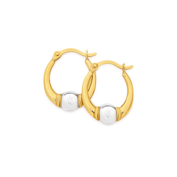 9ct Gold Two Tone 10mm Diamond-Cut Creole Earrings