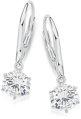Sterling Silver CZ 6-Claw Leverback Hook Earrings 1615116
