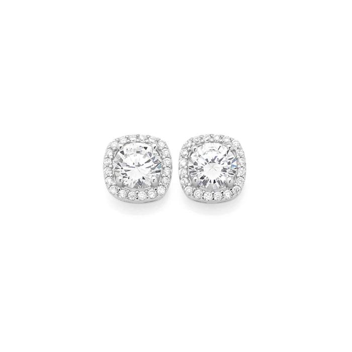 Sterling Silver Cushion CZ Frame Stud Earrings 1605103