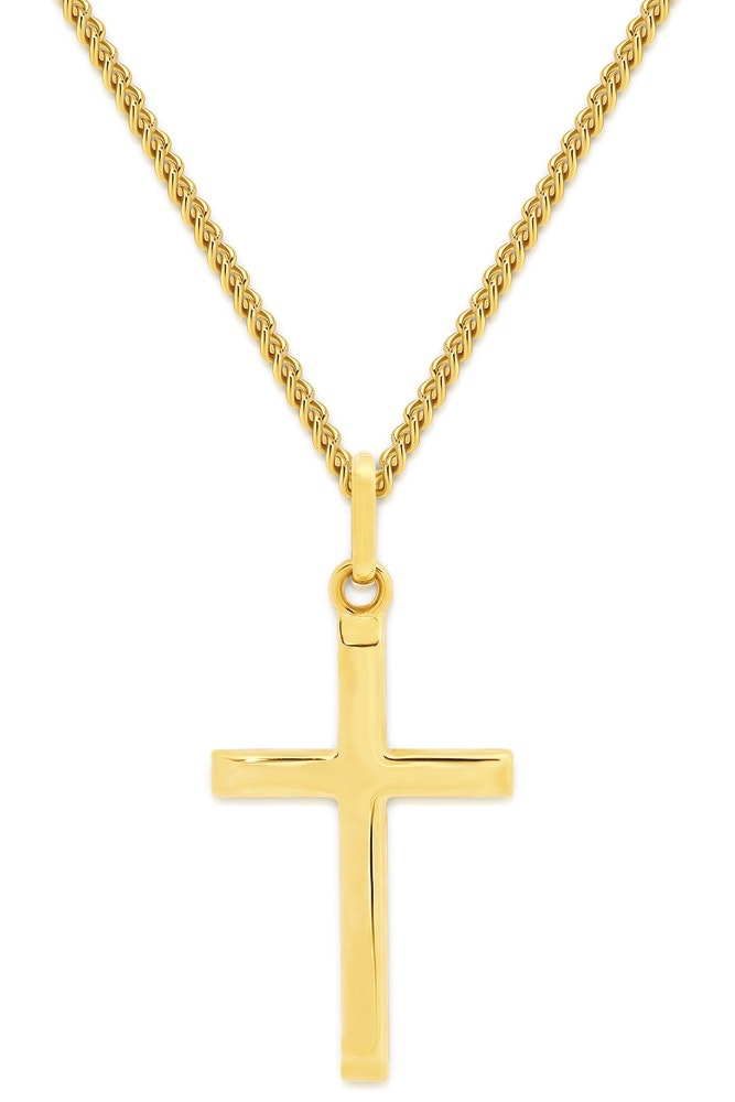 Italian Made 9ct Gold Hollow Polished Finish Slanted Edges Cross Pendant - Approximate Dimensions 13mm x 26mm including Bale