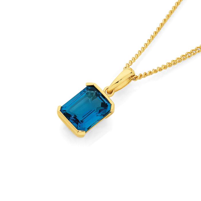 9ct Gold London Blue Topaz Emerald Cut Pendant
