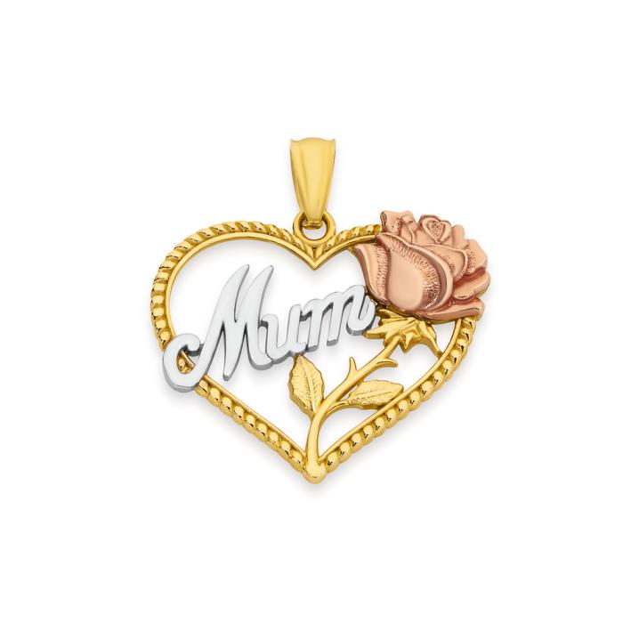 9ct Tri Tone Mum & Rose Heart Pendant.2525048