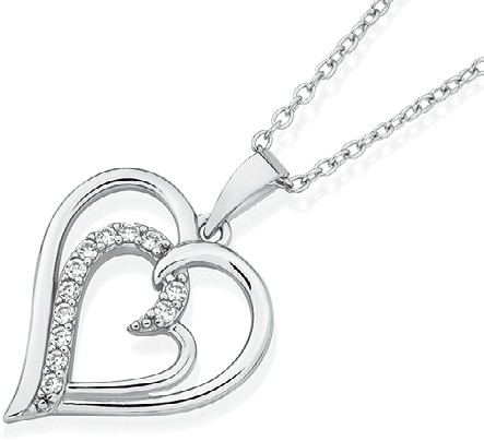 Sterling Silver CZ Twin Open Heart Pendant1705288