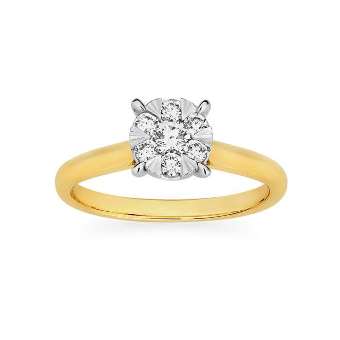 9ct Gold Diamond Round Brilliant Cut Cluster Ring Total Diamond Weight=.35ct