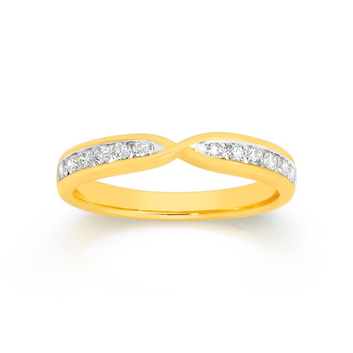 9ct Gold Diamond Round Brilliant Cut Channel Set Crossover Band Total Diamond Weight=.34ct