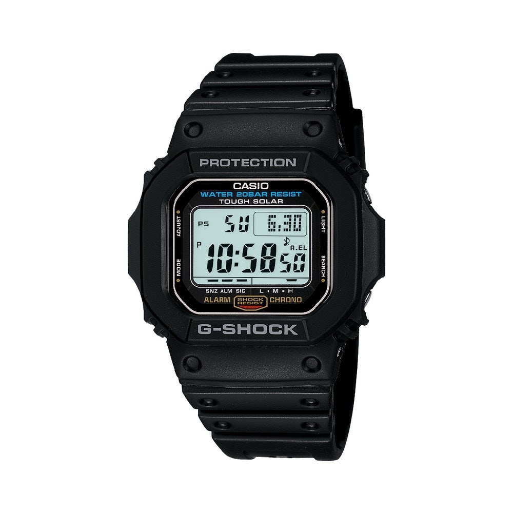 These Tough Solar models provide a choice of either the original G-5600 G-SHOCK design or the G-6900 design that is so popular among followers of today's street fashions. The Tough Solar system, which is equipped without changing the basic design of the watches, makes it possible to generate enough power to keep the watch running with minimal exposure to normal lighting. The simple designs of these watches were achieved by eliminating as much colouring and decoration as possible.
