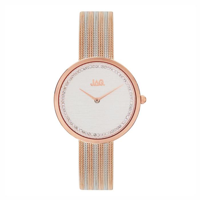 Fashionable stone-set dial with mesh bracelet creates an elegant style.5819407