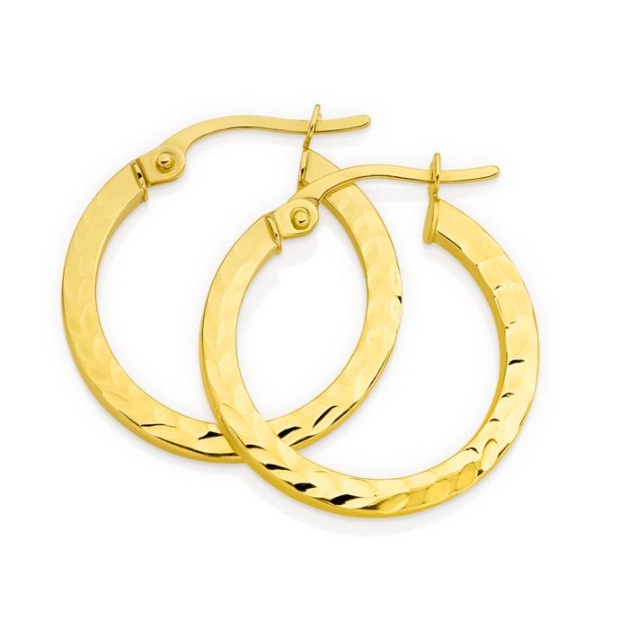 9ct Gold 15mm Diamond Cut Square Tube Hoop Earrings