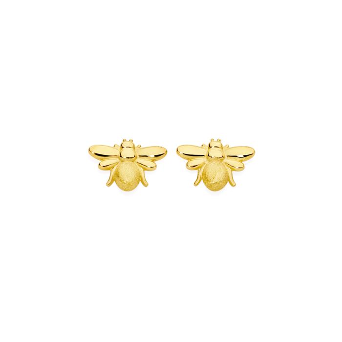 Italian Made 9ct Gold Satin and Polished Finish Bumble Bee Stud Earrings.