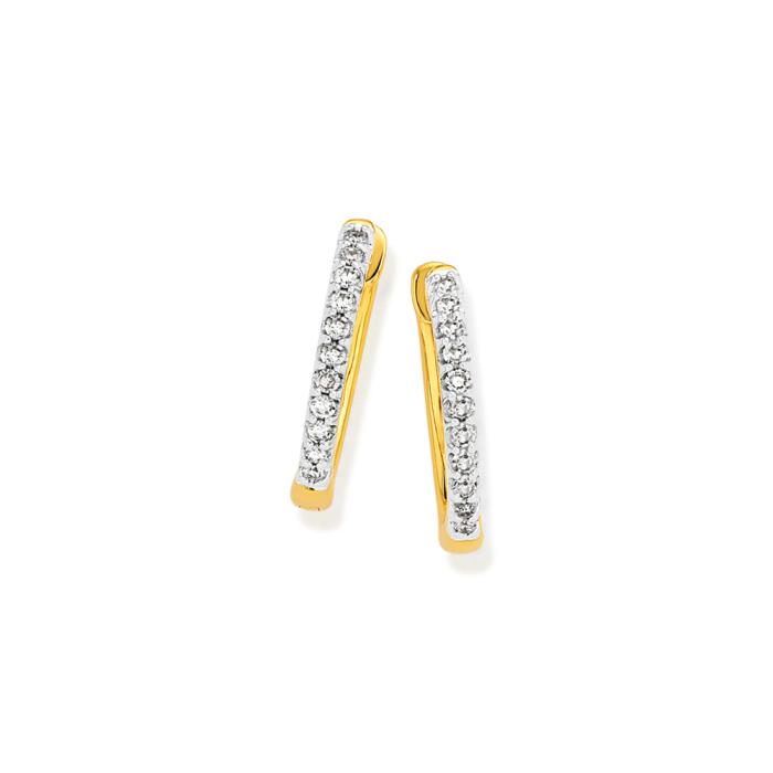 9ct Gold Diamond Small Claw Set Hoop Earrings Total Diamond Weight=.12ct. External size= Approximately 13mm x 2mm.