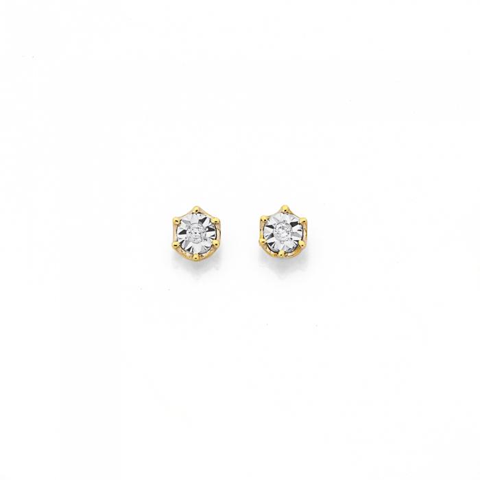 9ct Gold Diamond Round Miracle Set 6 Claw Stud Earrings. Size = Approx. 3mm x 3mm.