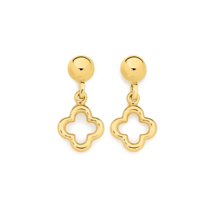9ct Gold Open Clover Drop Stud Earrings