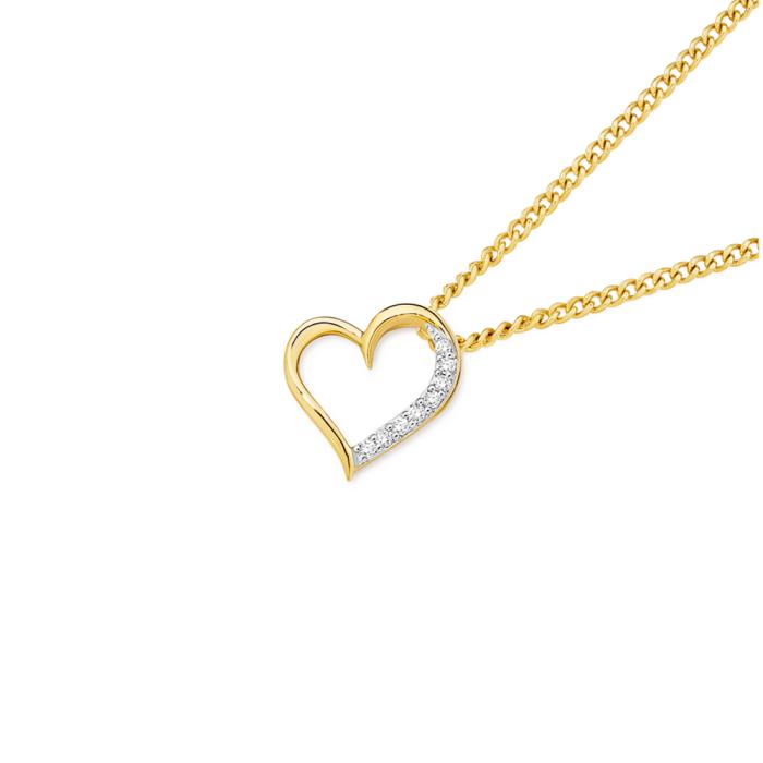 9ct Gold Diamond Angled Heart Pendant