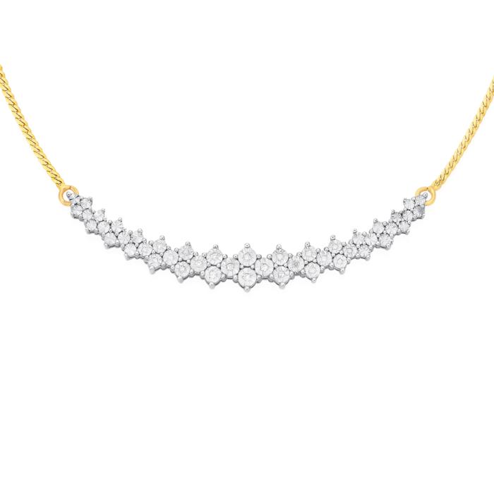 9ct Gold Diamond Miracle Set Gradual Curved Necklet Total Diamond Weight = .10ct. Length = Approx. 46cm.