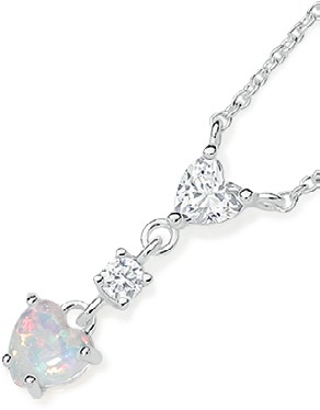 Sterling Silver Heart Synthetic Opal & CZ 45cm Necklet1741023