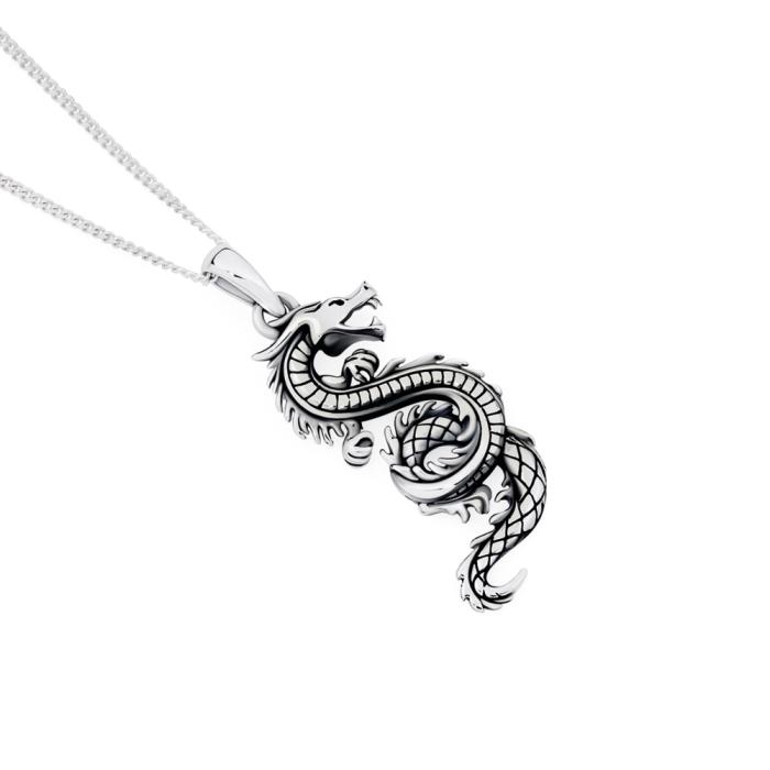 Sterling Silver Oxidised Swirl Tail Dragon Pendant1481012