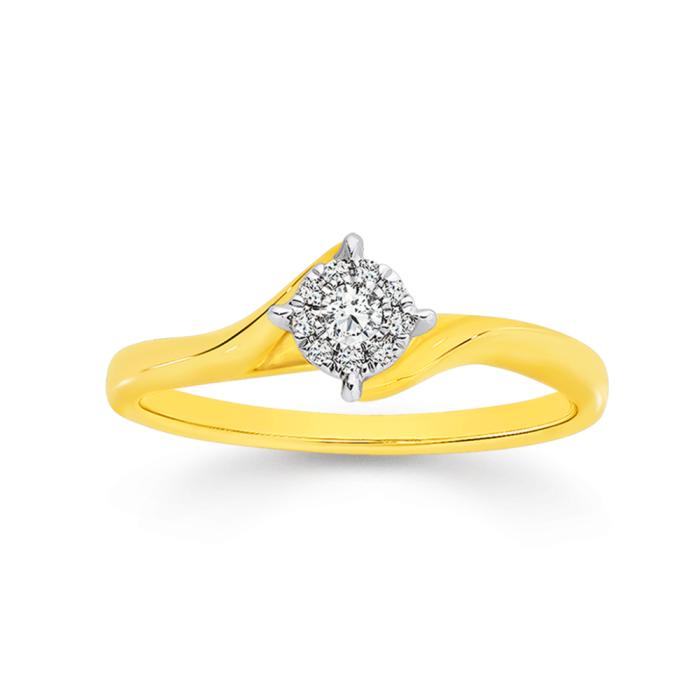 9ct Gold Diamond Round Brilliant Cut Cluster Swirl Shoulder Ring Total Diamond Weight=.10ct