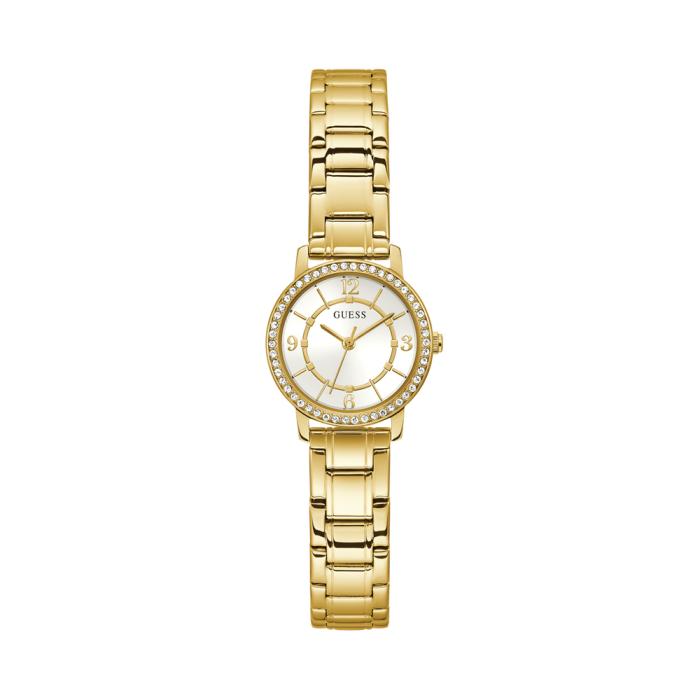 Meet the new petite to join the GUESS Watches range. Our perfectly proportioned 28mm gold-tone stainless steel case with crystal set bezel and matching gold-tone stainless steel bracelet can effortlessly take your look from day to night.