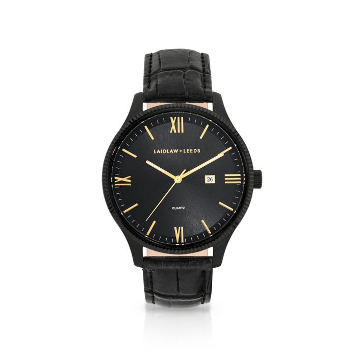 Dress up or dress down with this multipurpose casual dress watch - perfect for everyday wear as well as more formal functions. Featuring a black tone stainless steel case, black dial and a black genuine leather strap. The gold tone index gives this watch a pop of colour, whist remaining classy.