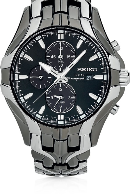 Seiko Men's Alarm Chronograph 100M w resist date calendar combined SS and hard coating silver and black case silver and black bracelet black dial and sub-dial baton luminous markers The Seiko SSC139P-9 Solar Alarm Gents Watch is designed for the modern adventurer, combining robust functionality with sleek style. Featuring a dark stainless-steel case and bracelet, the 42.8mm watch houses a bold black dial with three silver-accented sub-dials, providing stopwatch, alarm, and dual-time functions for a second time zone. Powered by Seikos Calibre V172 solar movement, it charges from any light source, operates for approximately six months when fully charged, and maintains precision within ?15 seconds per month, with an overcharge prevention feature for reliability. The SSC139P-9 also offers a 60-minute chronograph measuring in 1/5-second increments, date display, and screw-down case back, all protected by durable Hardlex crystal. With a case thickness of 11.5mm, a hard-coated stainless-steel build, a three-fold clasp with push-button release, and 100 metres of water resistance, this timepiece is ready for both adventure and everyday wear.