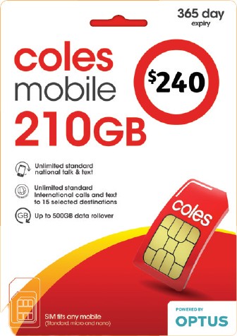 See colesmobile.com.au/terms for international destinations, full terms, coverage and compatibility.