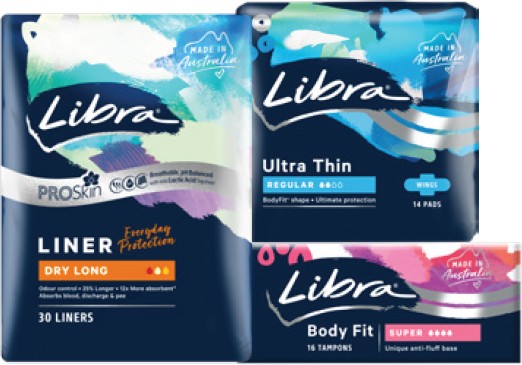 Libra Liner Dry Long 30 Liners, Ultra Thin Regular 14 Pads or Body Fit Super 16 Tampons