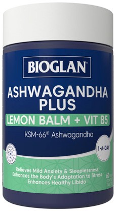 Bioglan Ashwagandha Plus Lemon Balm + Vit B5 60 Capsules