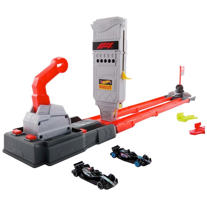 Mattel Hot Wheels Racing Formula 1 Grid Start Track Set & 2 Die-Cast F1 Cars