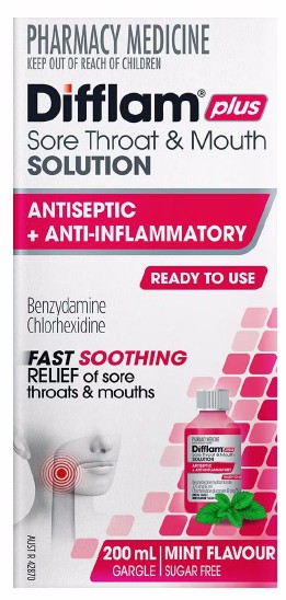 Difflam Plus Sore Throat & Mouth Solution + Antiseptic & Anti-Inflammatory 200ml