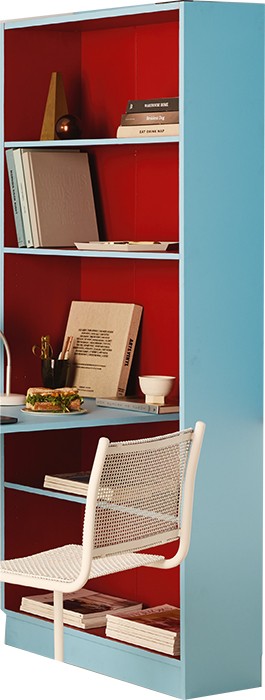 Use a pine panel for the desktop and a flatpack five-tier bookcase unit to create the nook, painting all pieces before assembly. One fixed shelf is replaced with a hidden batten to support the desktop in the bookcase.