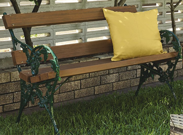 Give a classic – but very well weathered – wrought iron and timber garden seat a new lease of life with a paint-and-stain job.