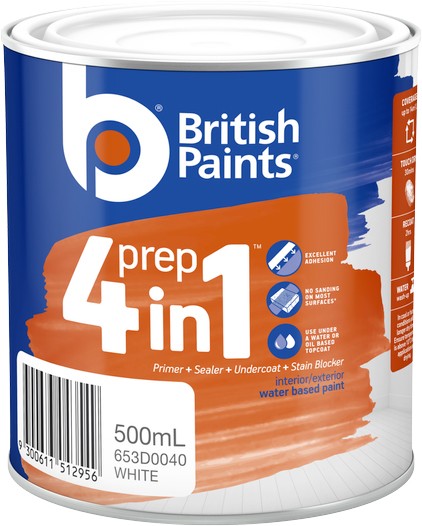 British Paints 4 in 1 Prep Primer Sealer Undercoat in White 500mL