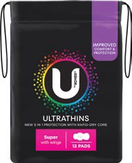 U By Kotex Ultrathin Pads With Wings Super 12 Pack