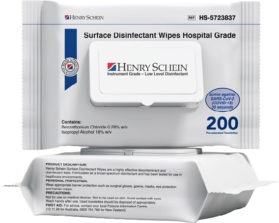 Buy 4+ 10% off Henry Schein Surface Disinfection Wipe Hospital Grade Flat Pack 200pk