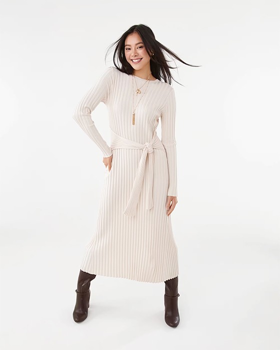 Long Sleeve Waist Tie Maxi Dress