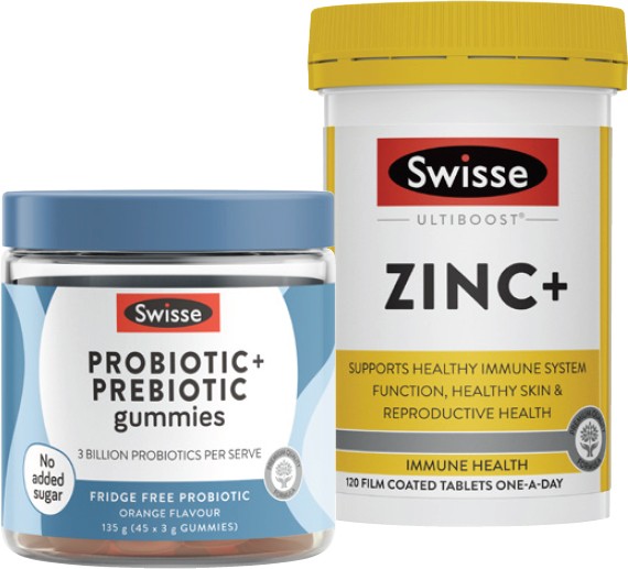 Swisse Probiotic + Prebiotic Gummies 45 Pack or Ultiboost Zinc+ Tablets 120 Pack^