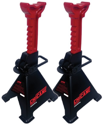 The Chicane Ratchet Type Axle Stands provide secure and stable vehicle support during maintenance. The ratchet mechanism allows for precise and safe height adjustment.