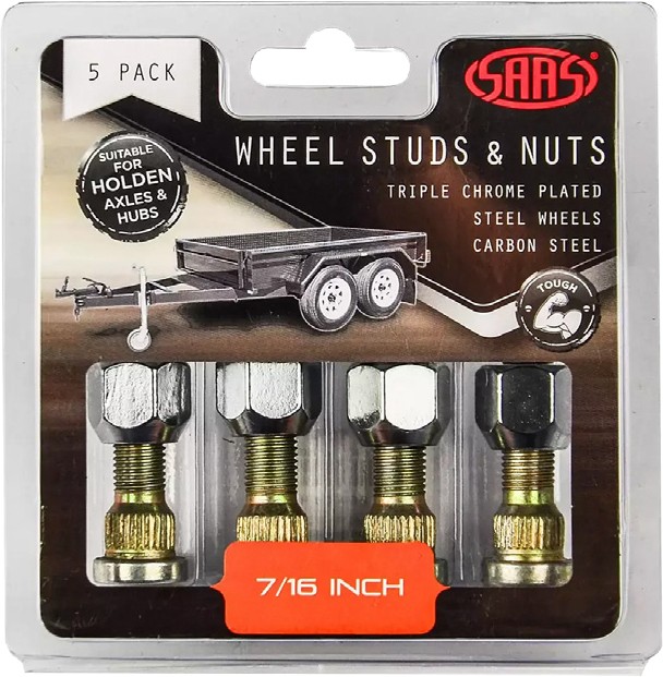 SAAS Trailer Studs and Nuts are available to suit a range of common trailer hubs. The TWS16105 is for popular Holden styled patterns as they feature a 7/16 stud.