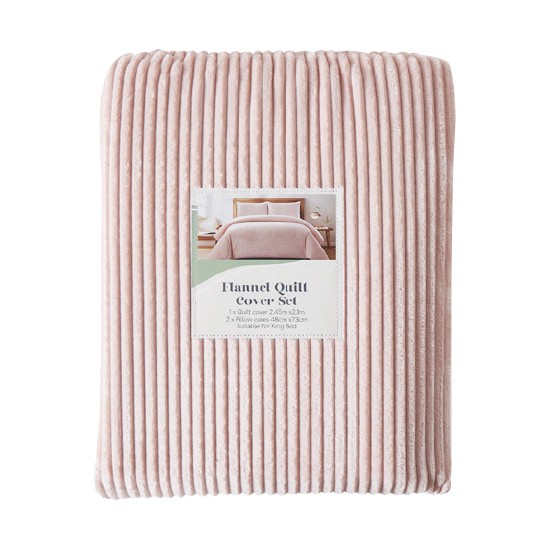 Queen Bed Flannel Quilt Cover Set – Pink Stripe