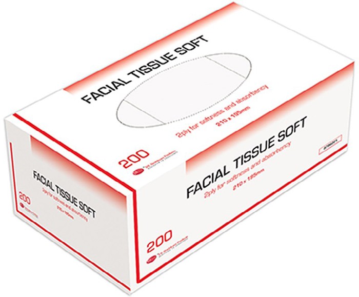 DE Facial Tissue Soft 2ply 200 Sheets Per Box 24pk