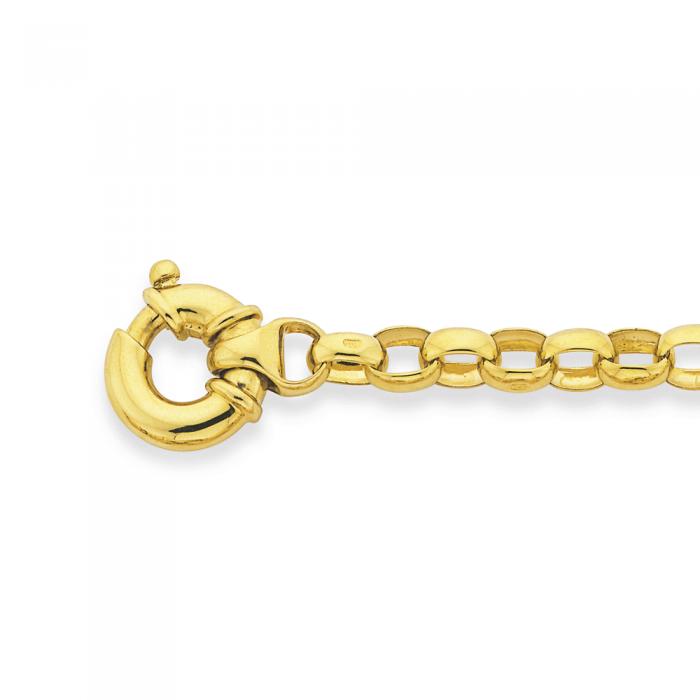 9ct Gold 19cm Solid Oval Belcher Bolt Ring Bracelet. Approximate Dimensions - 14mm Bolt Ring and 6mm Link Width.